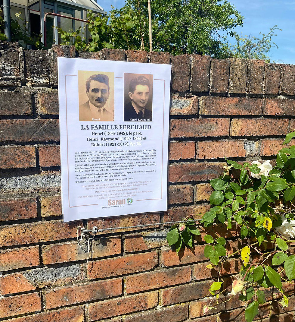 La commémoration de la journée nationale du souvenir des victimes et des héros de la Déportation s'est déroulée ce dimanche 26 avril, à Saran, rue Henri-Ferchaud, père et fils, à proximité de leur maison de la rue des Aydes, où ils furent arrêtés en 1941 pour faits de résistance.